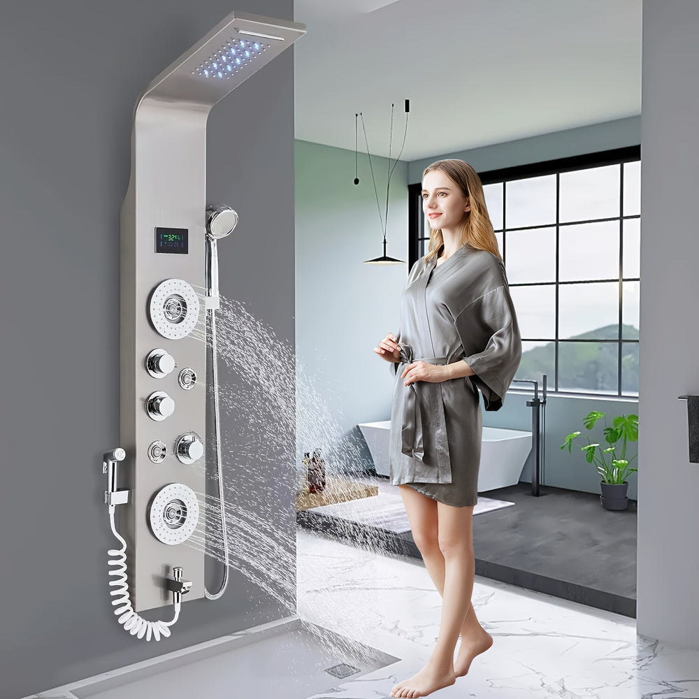![[Stainless Steel Shower Panel] 6 Shower Modes Stainless Steel Shower Panel Tower System - Wall Mounted Multi-Function Shower Panel with Spout Rainfall Waterfall Massage Jets Tub Spout Hand Shower for Home Hotel Resort, Unibody, Brushed Nickel](http://buytvexpress.com/cdn/shop/files/ba67b053-cb98-4469-9533-f86ca462cdef_medium.jpg?v=1758617397)